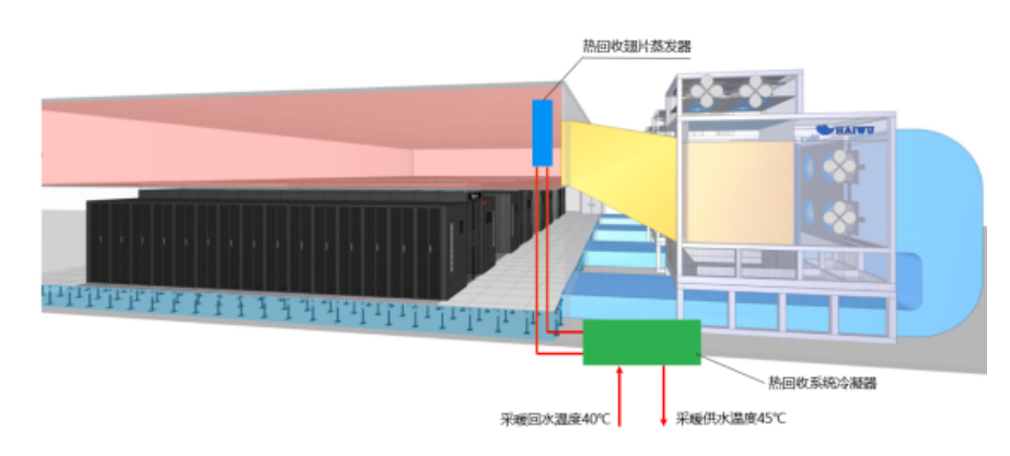 住房城鄉(xiāng)建設(shè)部印發(fā)的《綠色數(shù)據(jù)中心建筑評(píng)價(jià)技術(shù)細(xì)則》指出:數(shù)據(jù)中心輔助區(qū)和周邊區(qū)域有供暖或生活熱水需求時(shí),宜設(shè)計(jì)能量綜合利用方案,回收主機(jī)房空調(diào)系統(tǒng)的排熱作為熱源,宜采用熱泵機(jī)組回收排熱。