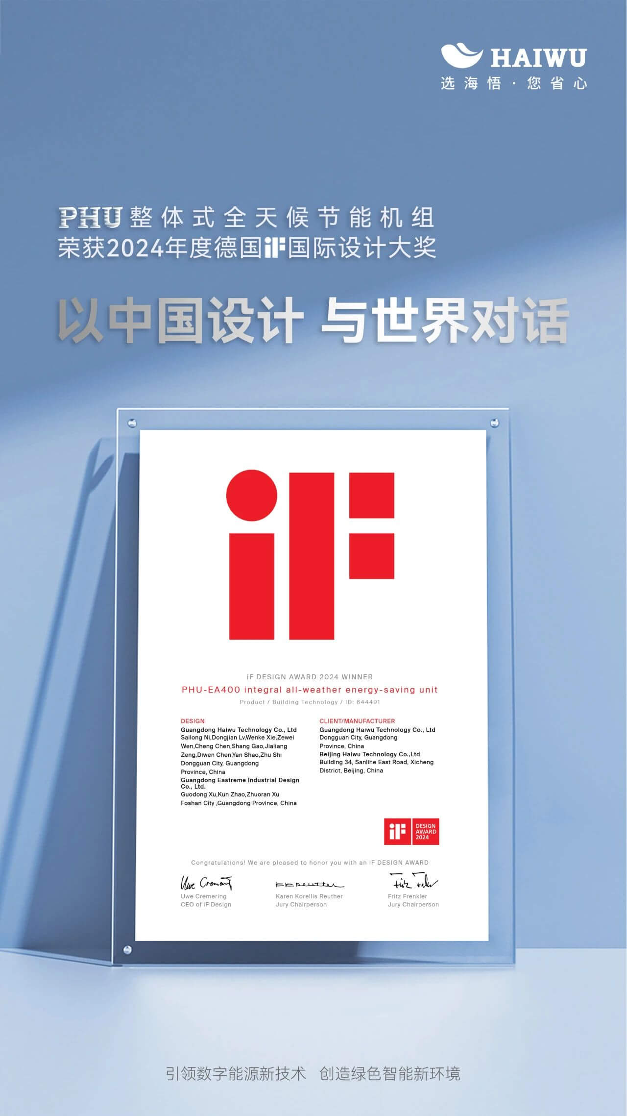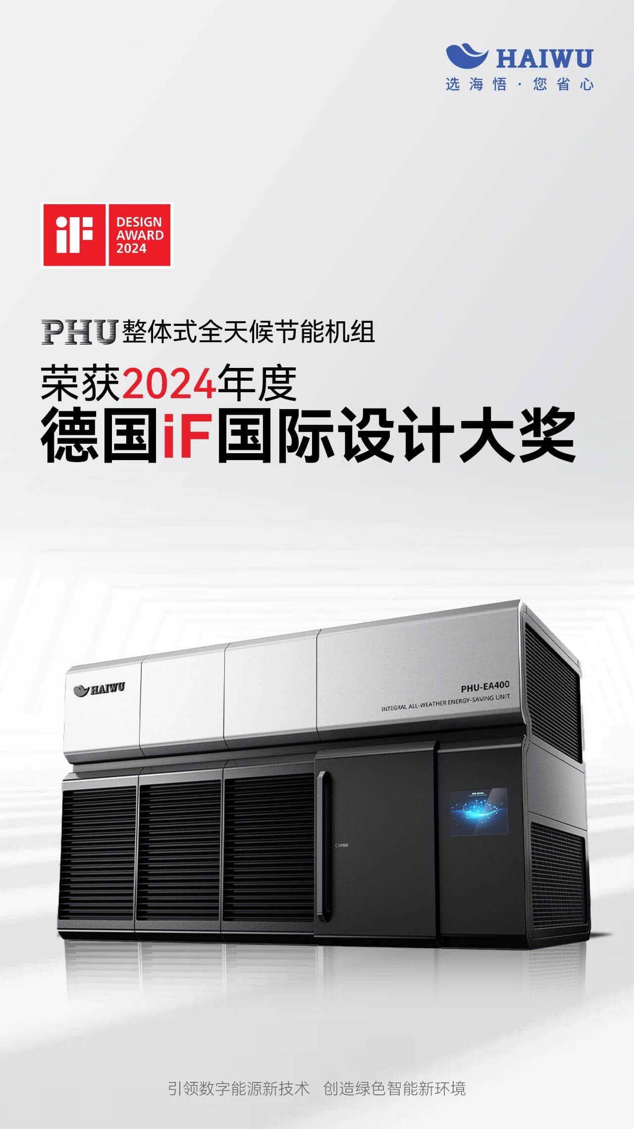 海悟PHU整體式全天候節(jié)能機(jī)組憑借出色的工業(yè)設(shè)計(jì)和創(chuàng)新實(shí)力,從來自72個(gè)國(guó)家與地區(qū)的近萬件作品中脫穎而出,一舉斬獲2024年德國(guó)iF設(shè)計(jì)獎(jiǎng)!