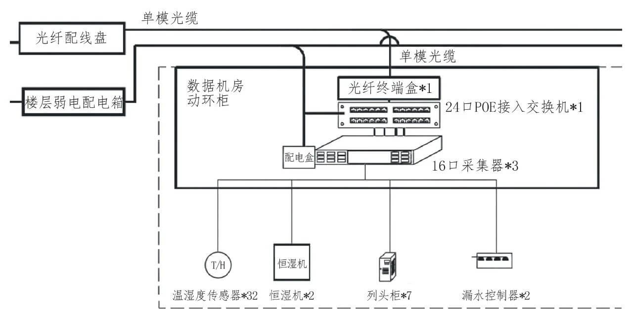 ● 智能監(jiān)控系統(tǒng):采用物聯(lián)網(wǎng)技術(shù)和傳感器,實(shí)時監(jiān)測數(shù)據(jù)中心的溫度、濕度、電源等環(huán)境參數(shù),確保數(shù)據(jù)中心穩(wěn)定運(yùn)行。如下圖2為動力環(huán)境監(jiān)控系統(tǒng)圖: