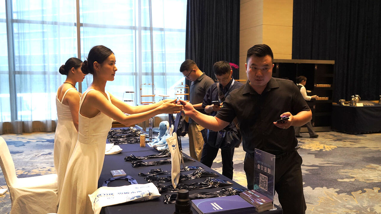 活動還未正式開始,現(xiàn)場已是一片熱鬧非凡。嘉賓們手持特制的簽到卡,領取了海悟集團的精心準備——公司介紹折頁、精美小禮品,以及詳盡的數(shù)據(jù)中心解決方案畫冊。每一份資料都承載著海悟對綠色節(jié)能技術的執(zhí)著追求與不懈創(chuàng)新。背景簽名墻前,嘉賓們紛紛留影,記錄下這一激動人心的時刻。