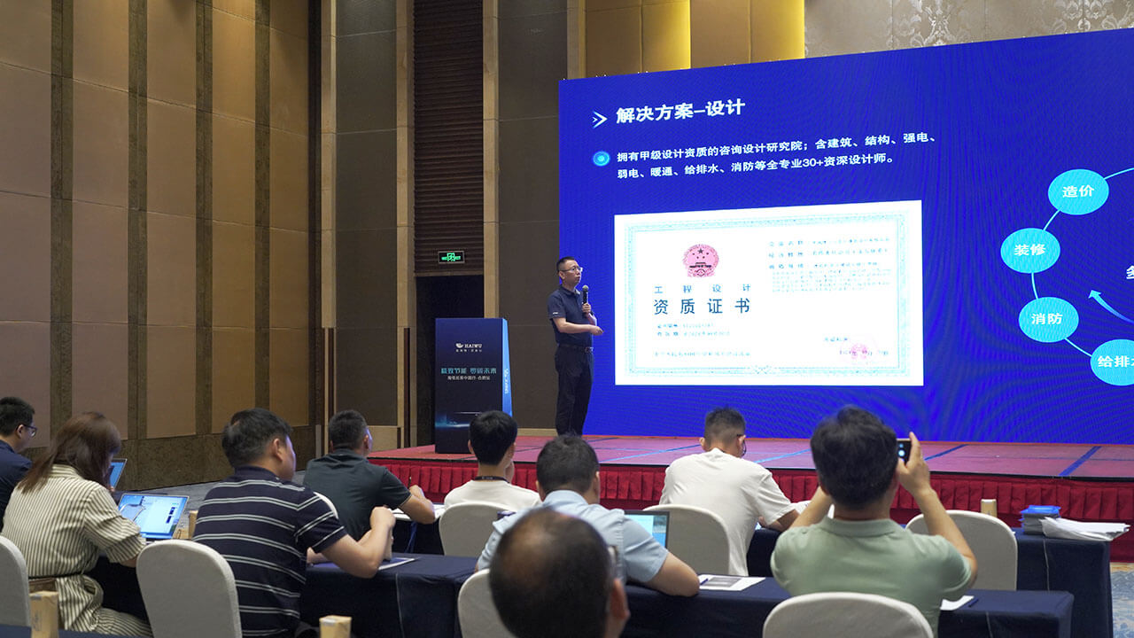 接下來的議程中,一系列精彩紛呈的技術分享輪番上演。從會議主題“極致節(jié)能零碳未來”的深入解讀,到中大型溫控產品的創(chuàng)新實踐揭秘,再到雙碳背景下關鍵基礎設施能效提升的策略探討,每一個環(huán)節(jié)都讓人受益匪淺。海悟集團的產品總監(jiān)陳杰更是以“揭秘數(shù)據(jù)中心超低PUE創(chuàng)新實踐”為主題,為大家展示了海悟如何通過技術創(chuàng)新實現(xiàn)數(shù)據(jù)中心的綠色高效運行。