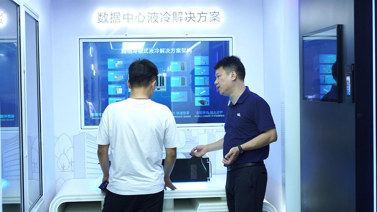 最令人期待的莫過于展車參觀環(huán)節(jié)。海悟集團精心打造的“極致節(jié)能零碳未來”展車,仿佛一個微縮的綠色數(shù)據(jù)中心世界。在這里,嘉賓們可以近距離接觸HyperBlock系列微模塊數(shù)據(jù)中心、邊緣數(shù)據(jù)中心解決方案、數(shù)據(jù)中心液冷解決方案等前沿科技產品,親身體驗綠色科技的魅力。