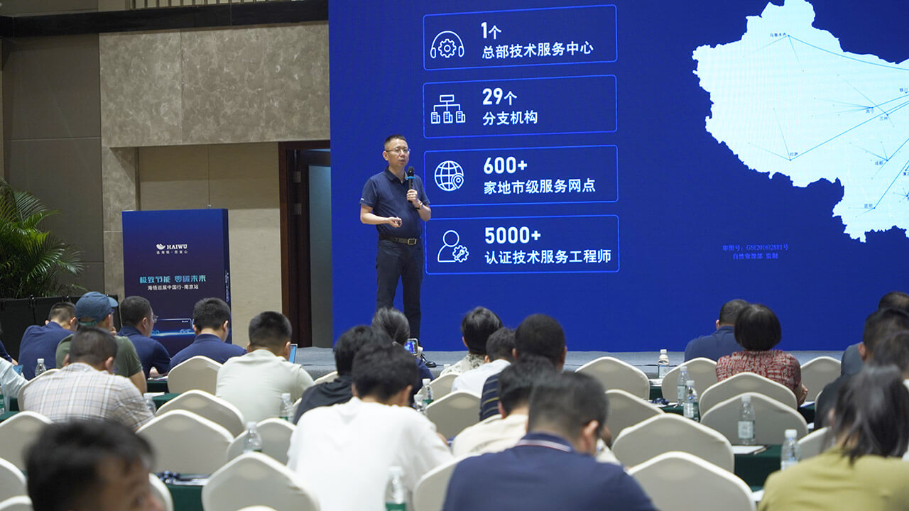海悟集團何正煒何總首先上臺致辭,他的話語中充滿了對綠色能源與可持續(xù)發(fā)展的深刻理解,以及對南京作為國家人工智能創(chuàng)新應用先導區(qū)建設的堅定支持。何總的致辭不僅為活動定下了“極致節(jié)能 零碳未來”的主基調,更激發(fā)了現場每一位參與者對于綠色科技未來的無限憧憬。