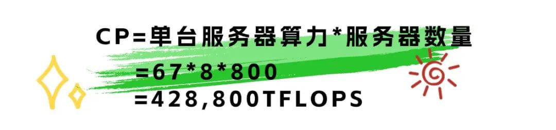 再以上面的數(shù)據(jù)中心為例,代入算力428,800TFLOPS(半精度FP32)與IT總?cè)萘?000kW進(jìn)行計(jì)算: