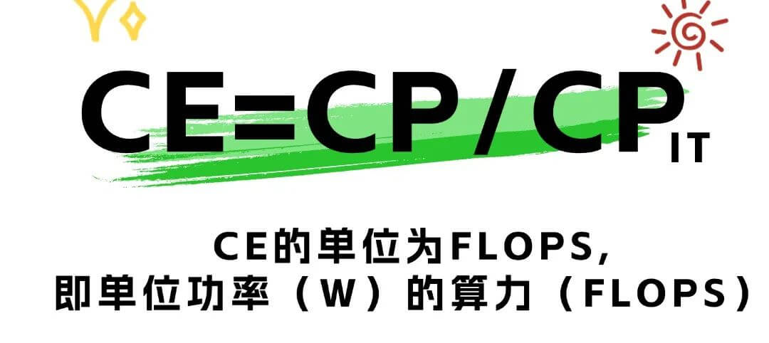 算效(CE,ComputationalEmciency)是指數(shù)據(jù)中心算力與功率的比值,即“數(shù)據(jù)中心每瓦功率所產(chǎn)生的算力”,是同時(shí)考慮數(shù)據(jù)中心計(jì)算性能與功率的種效率。數(shù)值越大,代表單位功率的算力越強(qiáng),效能越高。若CP為以單精度浮點(diǎn)數(shù)(FP32)的數(shù)據(jù)中心的算力,PC為數(shù)據(jù)中心IT設(shè)備的整體功率,其單位為瓦(W),則算效CE的計(jì)算公式為: