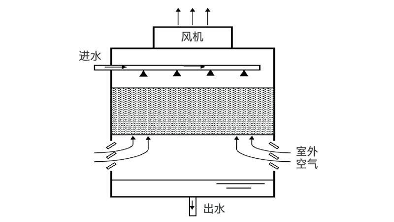 圖 8 開(kāi)式冷卻塔冷卻示意圖