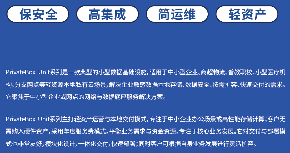 海悟云“云邊驛站”園區(qū)本地化私有數(shù)據(jù)機房托管服務(wù)方案,專為企業(yè)園區(qū)、寫字樓等場景設(shè)計,旨在滿足中小型企業(yè)、商超物流、小型醫(yī)療機構(gòu)、分支網(wǎng)點、MES制造等輕資源需求場景。該方案聚焦于中小型企業(yè)的私有云數(shù)據(jù)底座,提供包括機柜、UPS配電和服務(wù)器等在內(nèi)的完整服務(wù)解決方案,確保數(shù)據(jù)敏感性、系統(tǒng)穩(wěn)定性、數(shù)據(jù)安全性與部署靈活性。