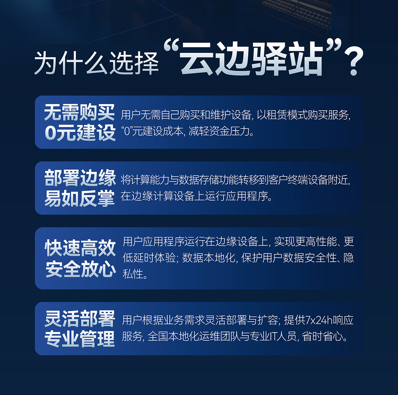 隨著數(shù)字化轉(zhuǎn)型的深入,各行各業(yè)對算力的需求與日俱增。然而,算力中心的高能耗與碳排放問題,不僅加劇了環(huán)境壓力,也制約了企業(yè)的可持續(xù)發(fā)展。因此,探索低能耗、高效率的算力服務(wù)模式,已成為企業(yè)轉(zhuǎn)型升級的必然選擇。海悟云“云邊驛站”正是在這一背景下應(yīng)運而生,旨在通過園區(qū)本地化私有數(shù)據(jù)機房托管服務(wù),為企業(yè)提供綠色、高效、安全的算力解決方案。