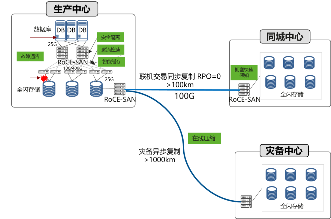 華為超融合數(shù)據(jù)中心網(wǎng)絡(luò)全無(wú)損以太存儲(chǔ)網(wǎng)絡(luò)NoF+突破了以太網(wǎng)超長(zhǎng)距傳輸反饋慢的缺陷,可實(shí)現(xiàn)跨數(shù)據(jù)中心間的長(zhǎng)距無(wú)損傳輸,同時(shí)通過(guò)智能無(wú)損算法實(shí)現(xiàn)了流量智能識(shí)別,在擁塞場(chǎng)景下?lián)碛懈蟮膸捓寐屎透偷钠骄鶗r(shí)延。對(duì)比FC專網(wǎng),存儲(chǔ)的吞吐IOPS最大可提升93%,流量突發(fā)導(dǎo)致的擁塞時(shí)延最大可降低43%。