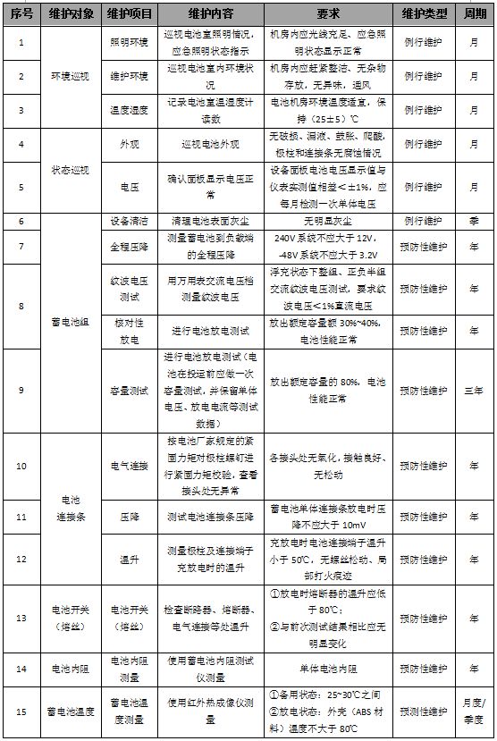2、蓄電池的維護(hù)保養(yǎng)要點(diǎn):