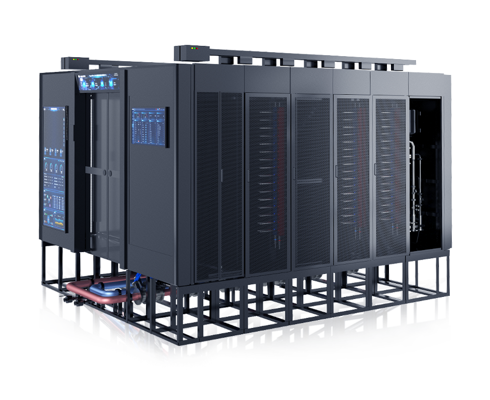 海悟液冷雙排數(shù)據(jù)中心解決方案以單個(gè)模塊為單位,采用模塊化設(shè)計(jì)理念,高集成高標(biāo)準(zhǔn)設(shè)計(jì),整合IT機(jī)柜、配電單元、封閉組件、制冷單元、預(yù)制二次管路、布線、綜合運(yùn)維等功能獨(dú)立的單元,實(shí)現(xiàn)數(shù)據(jù)中心的完整功能。液冷單個(gè)模塊組件全部在工廠預(yù)制安裝、調(diào)試,可靈活拆卸、搬運(yùn),即節(jié)約機(jī)房空間又可靈活擴(kuò)展,實(shí)現(xiàn)現(xiàn)場(chǎng)批量快速部署,提供PUE≤1.15的高功率密度場(chǎng)景的綠色節(jié)能解決方案。