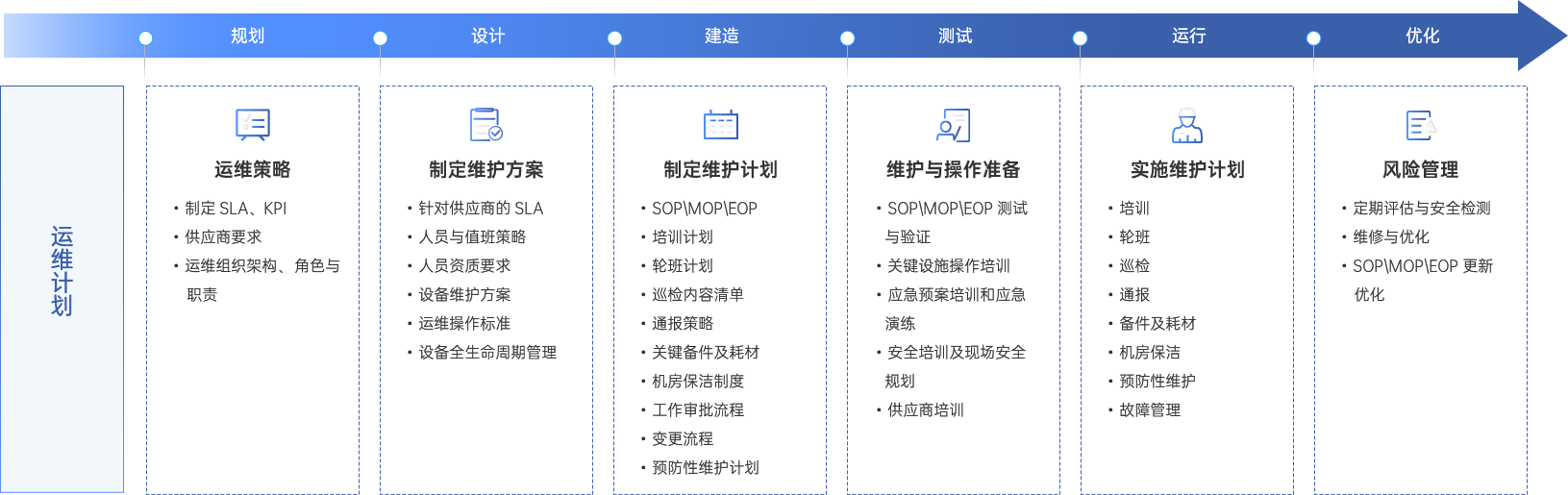 運維內(nèi)容豐富全面:包含例行維護、運維管理、安全管理、優(yōu)化管理、故障處理、工程配合等